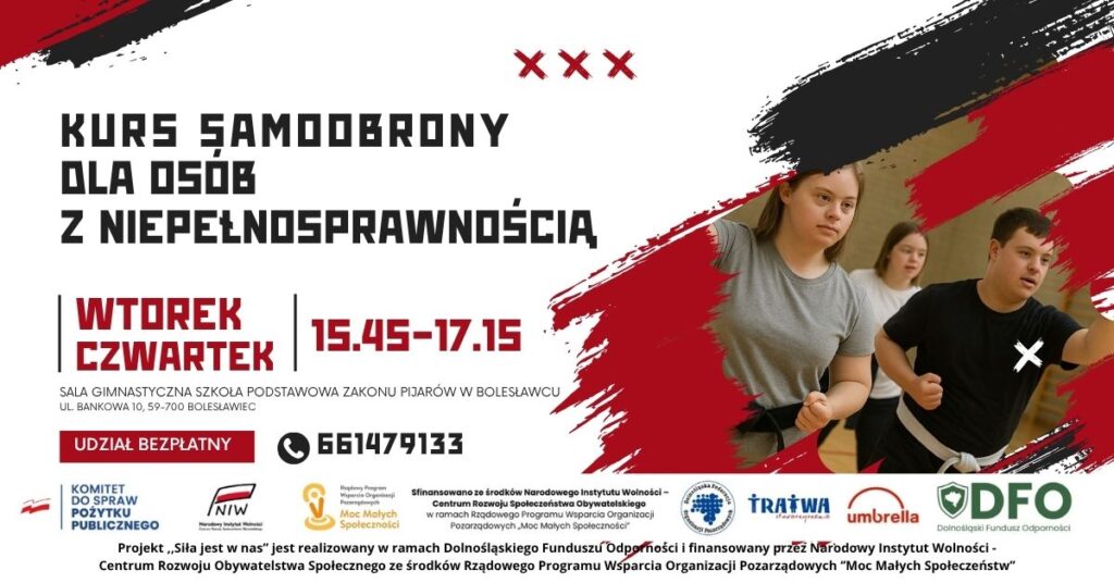 Grupa nieformalna „Działamy razem” serdecznie zaprasza mieszkańców powiatu bolesławieckiego na wyjątkowe zajęcia z samoobrony, stworzone z myślą o osobach z niepełnosprawnościami.